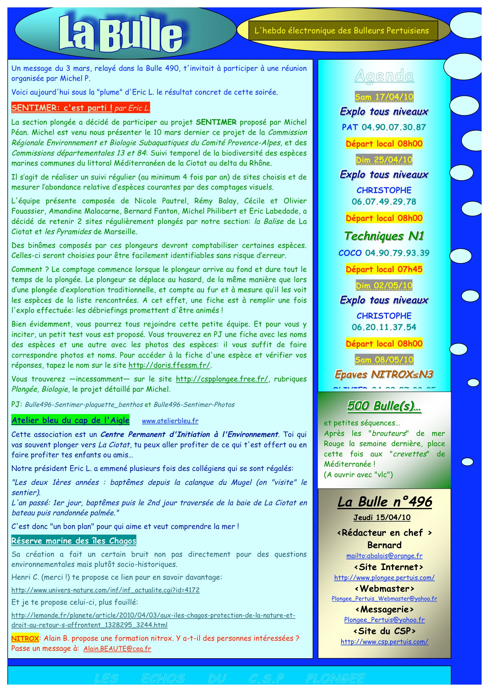 Bulle 496 du jeudi 15 avril 2010