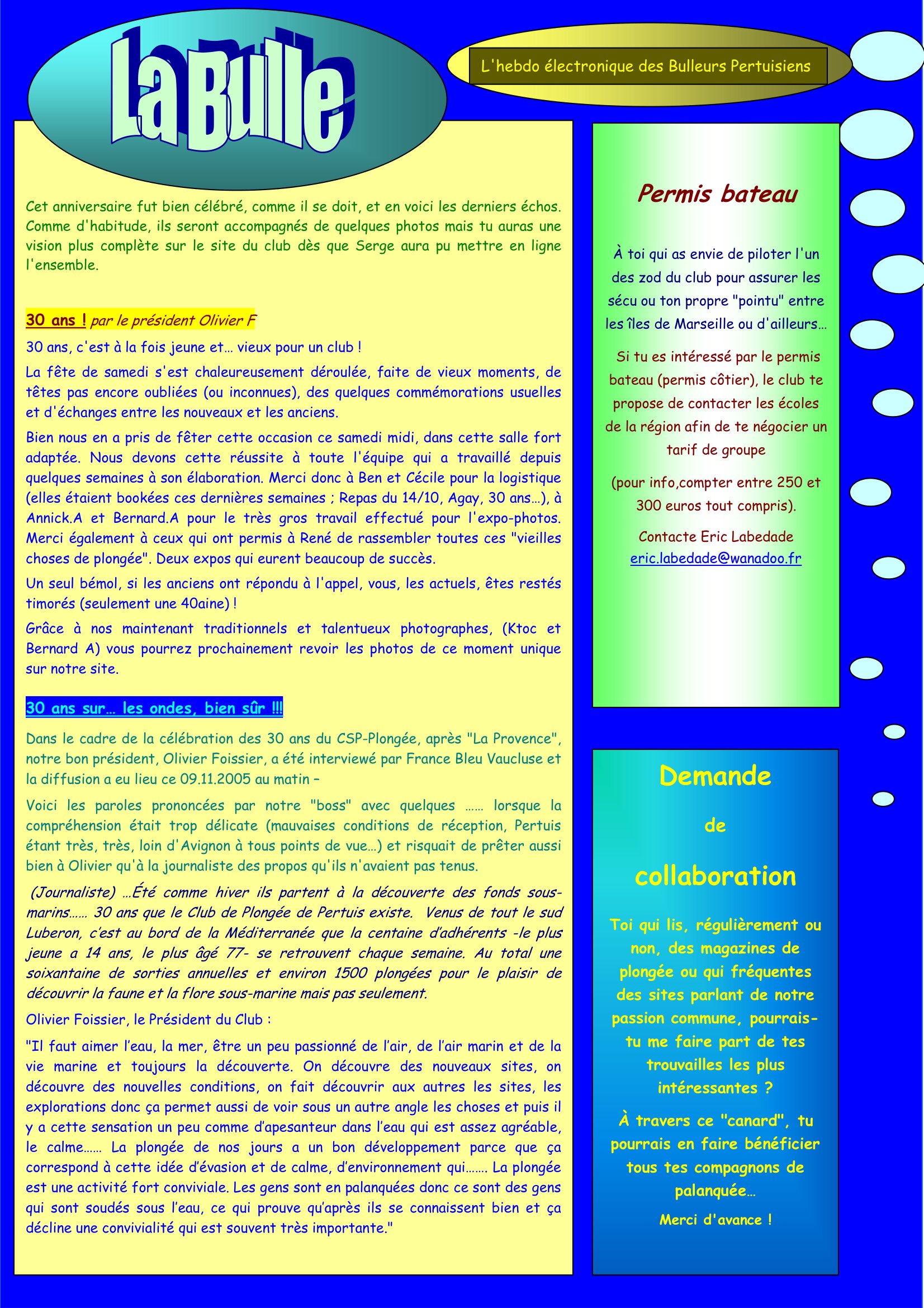 Bulle 272 du 10 novembre 2005 - 30 ans